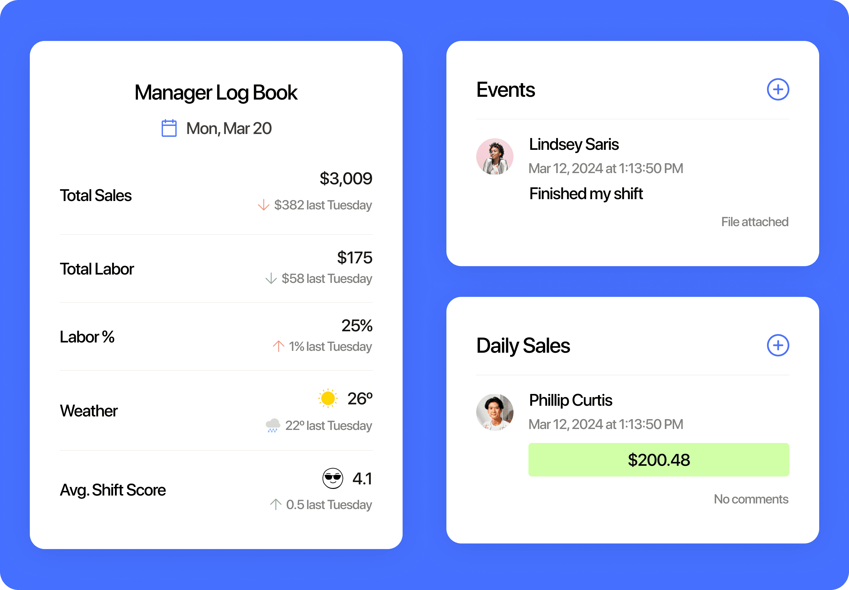 You can’t be at the pub 24/7; luckily, the 7shifts manager dashboard lets you add notes with shift details and track important metrics wherever you are.